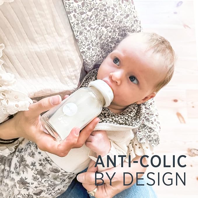 - ANTI-COLIC GLASS BABY BOTTLE - BEST CHOICE FOR BREAST-FED BABIES - HEVEA glass baby bottle nipples are cherry-shaped and made from 100% natural rubber, so they are soft and supple just like mom's nipple. Designed to ensure a proper latch and make the transition to bottle-feeding (or supplementation of breastfeeding) your baby a breeze! Our anti-colic valve is designed directly into the nipple, ensuring swallowing air is kept to a minimum, and the bottle itself is made from high-quality glass.