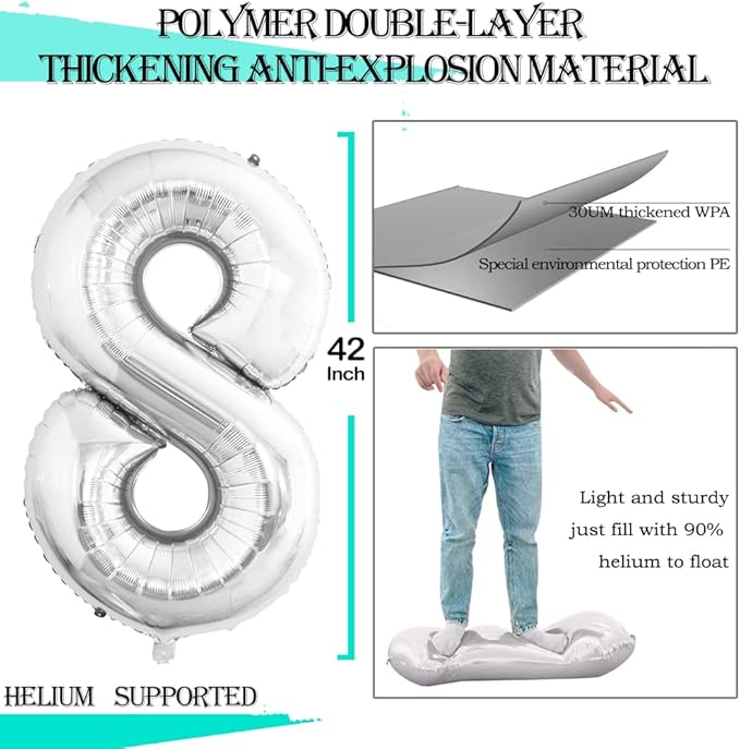 - Package Includes:Number 8 Balloons*3,42 inch,32 inch,16inch each,Straw*1