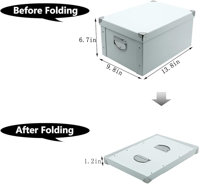 GUOZI Collapsible Storage Box, Decorative Memory Box with Lid & Metal Reinforced Corners, Cardboard File Bin with Handles, Organizer Gift Box for Keepsake Toy Photos Office Nursery Wardrobe Bookshelf