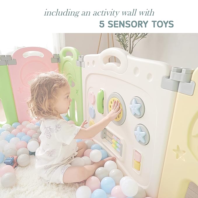 Fortella Cloud Castle Foldable Playpen, Baby Safety Play Yard with Whiteboard and Activity Wall, Indoors or Outdoors (Multicolor 14 Panel)