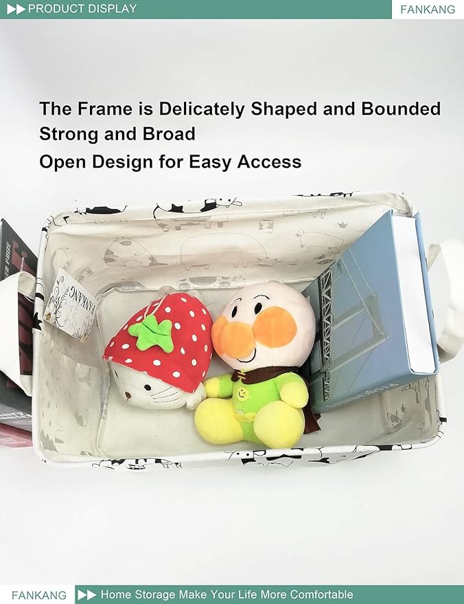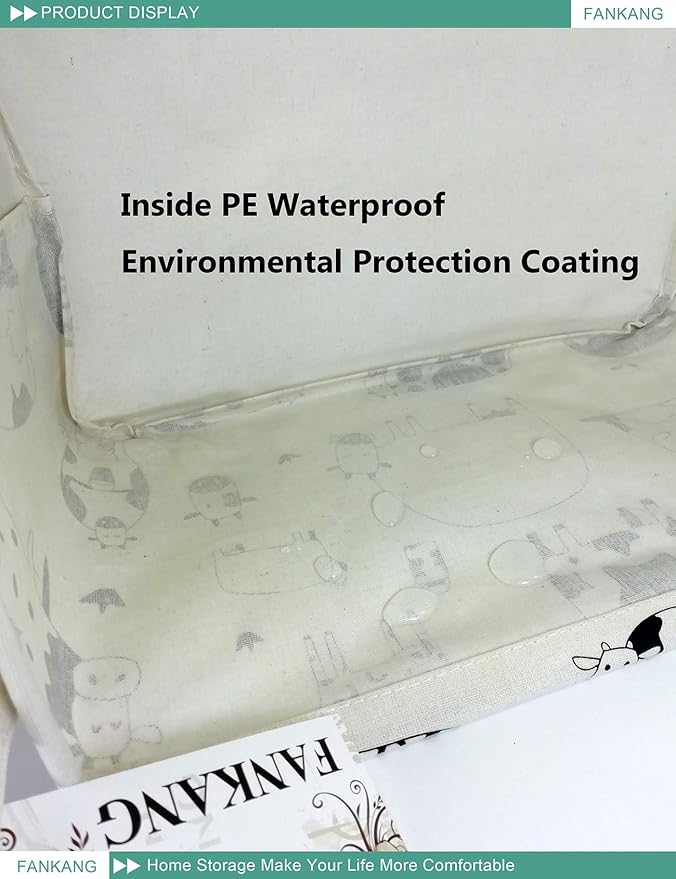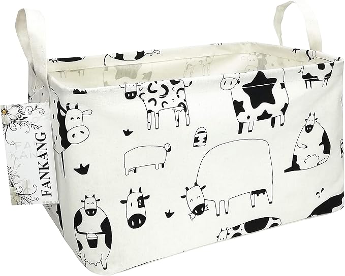 FANKANG Storage Basket,Nursery Hamper Canvas Laundry Basket Foldable with Waterproof PE Coating Storage, Office, Bedroom, Clothes,Toys(L, Rec-cows)