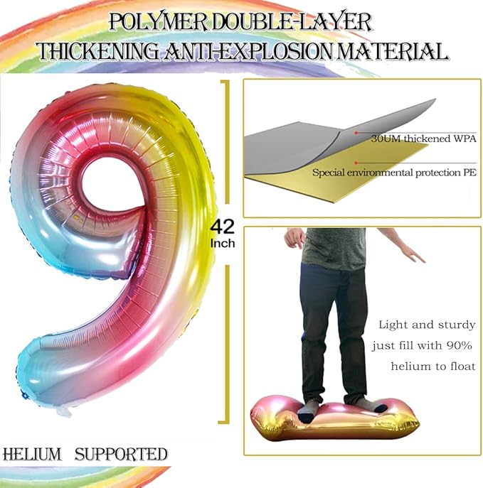 - Package Includes:Number 9 Balloons*3,42 inch,32 inch,16inch each,Straw*1