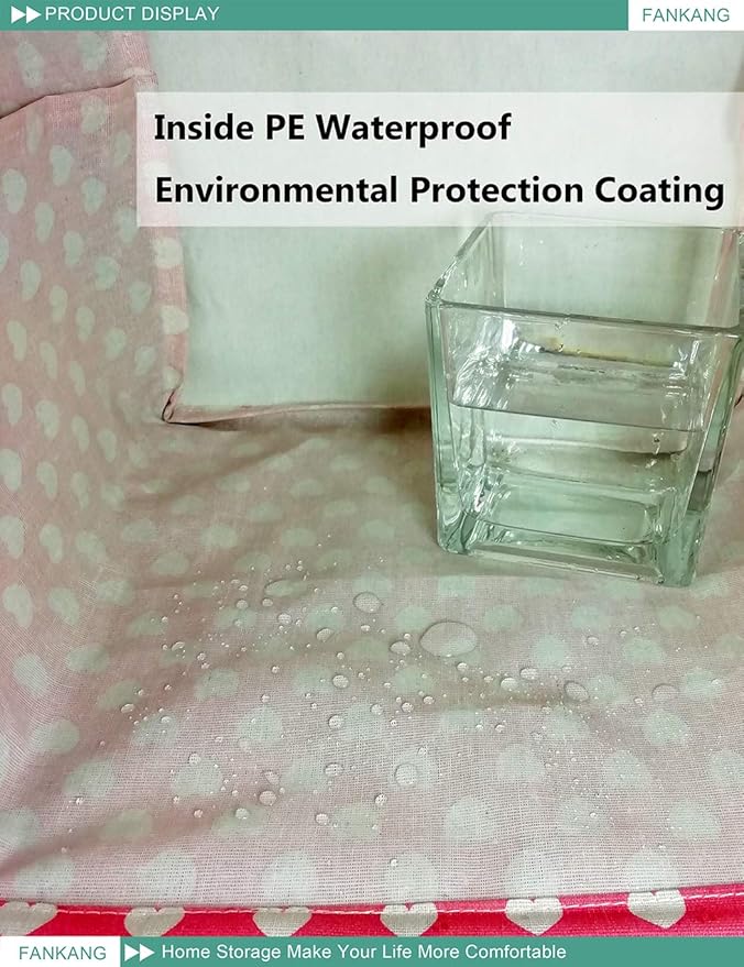FANKANG Square Nursery Hamper Storage Bins Canvas Laundry Basket Foldable with Waterproof PE Coating Storage Baskets Gift Baskets for Children, Office, Bedroom, Clothes(Square-Pink Heart )
