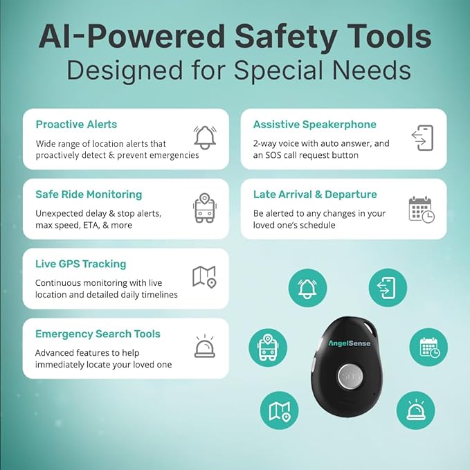 - INTELLIGENT ALERTS: Only AngelSense Auto-Learns daily routine for alerts when potentially dangerous situations occur: Early Departure, Unexpected Places, Late Arrival, Late Departure | SAFE RIDE MONITORING: Live Route, Max Speed, ETA, Unexpected Delays & Stops, Know if they miss the bus, get off at the wrong stop, the bus breaks down, or got off the bus but didnβt go into school. Standard GPS devices only provide alerts for preset geofences, we monitor your loved one anywhere & everywhere!