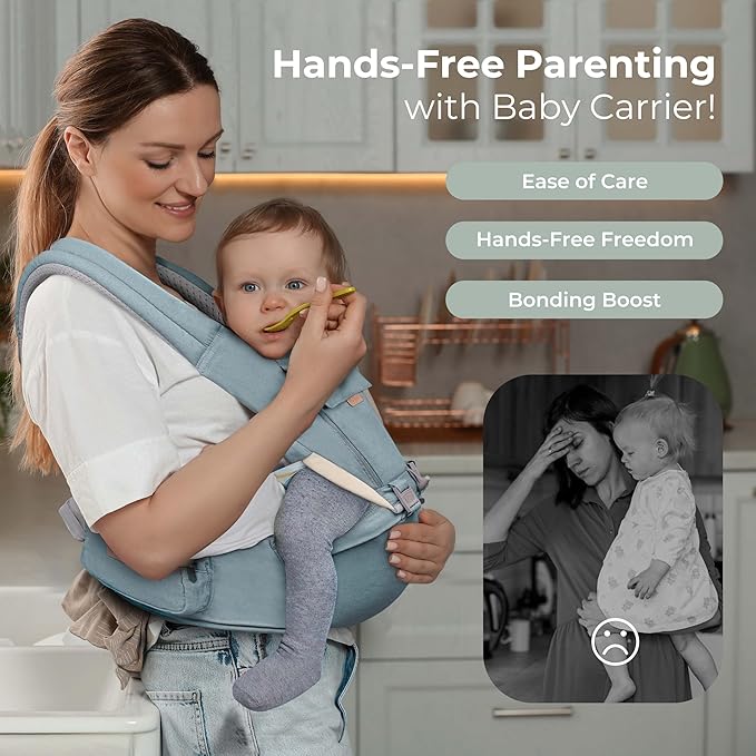 FRUITEAM 6-in-1 Baby Carrier with Waist Stool/Hip Seat for Breastfeeding, One Size Fits All - Adapt to Newborn, Infant & Toddler (Blue)