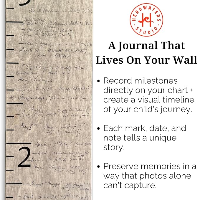 Height Ruler for Wall - Child Height Wall Chart, Height Chart for Kids Growth Chart for Wall Growth Chart Wood, Wooden Growth Chart for Wall - Gray w/Inches - 63"x5.75"