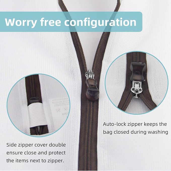 - Our upgrade anti-rust zipper with auto lock and side zipper protection band will prevent the bag from opening during washing and drying cycle. Youβll have a new quiet and a snag-free laundry experience