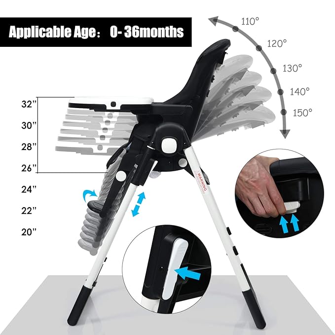 - 【INSTALLATION-FREE & SIMPLE FOLDING】Unlike other products, our highchair do not need to be installed. The high chair for baby can be folded quickly, a process that takes only a few seconds. And the detachable tray can also be placed on the rear leg. The folded highchair can stand on its own without additional support. Two built-in rear wheels are designed to make it easier for moms to move. You can put the baby highchair against the wall or in the cupboard, which will save you a lot of space.
