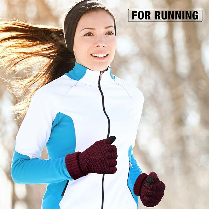 Geyoga 2 Pairs Women's Winter Touch Screen Gloves Soft Warm Fleece Lined Knit Elastic Cuff Winter Texting Gloves
