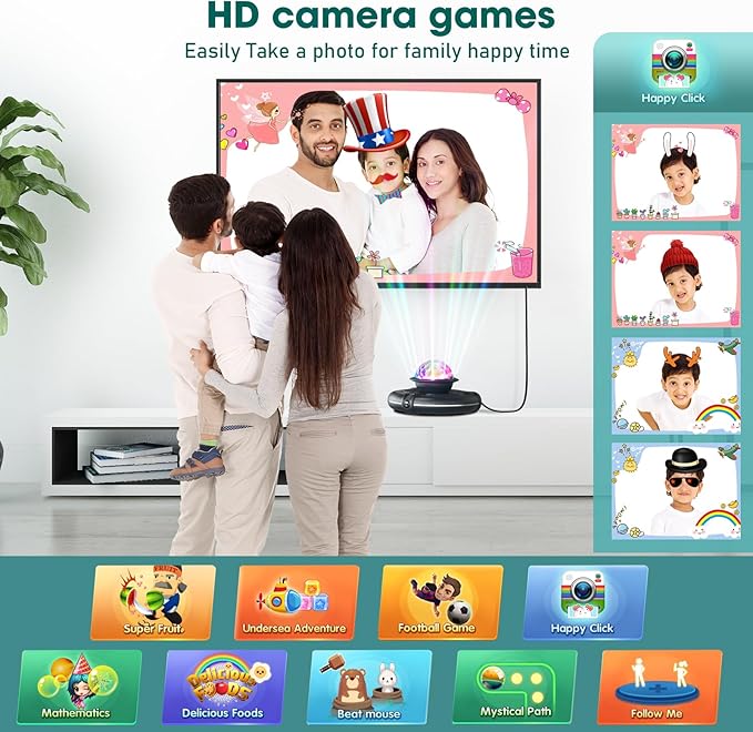 - Plug & Play Dance Party in 5 Minutes: No Wi-Fi? No problem! Simply connect via HDMI to your TV/PC/projector in βjust 5 minutes. Upgraded IC chip delivers ultra-smooth 4K visuals. The built-in 9 AR camera games, smart camera captures your every move, rendering your figure in real-time on the screen for an immersive experience. The disco ball lights create instant club vibes. Host epic kidsβ birthday battles or family game nights effortlessly. Plus, two wireless controllers let you play solo or battle it out with friends!