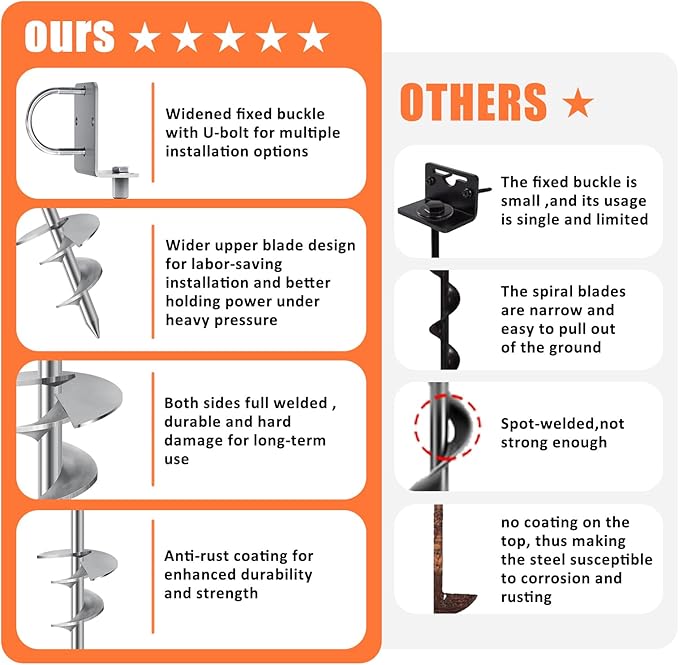 - High Quality:Our ground stakes are made of high quality steel with chorome plate coating to help prolong the life of the trampoline stakes, these shed anchor kits are built to last, ensuring long-lasting performance and reliability.