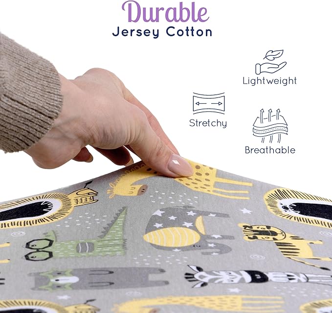 - πFUN & CHARMING DESIGN - Our crib mattress sheets features an adorable Safari Jungle pattern. This charming design brings the calming essence of the sea into your baby boy nursery.