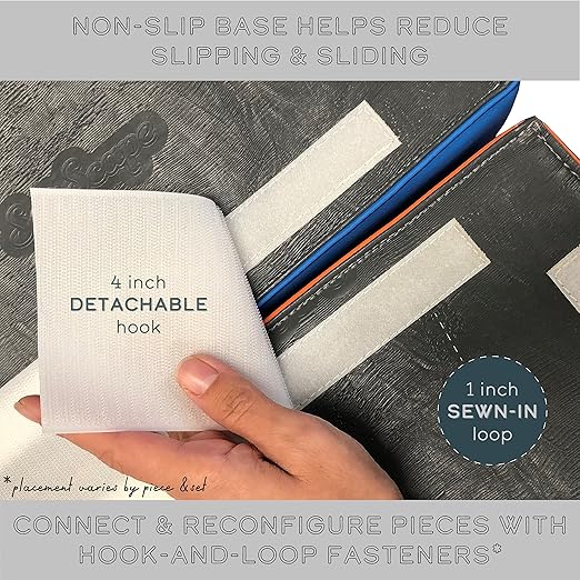 - MULTIPLE CONFIGURATIONS: hook-and-loop fasteners can be rearranged to build different configurations and keep pieces in place, while non-slip bottom reduces slipping and sliding while at play