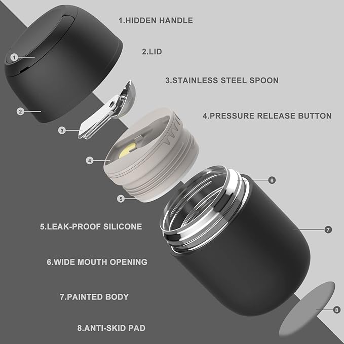 - Joopetalk thermo for hot food has an air pressure release button to help you easily open the bottle, and lunch thermo food jar is completely sealed, can prevent spilling accidentsοΌ100% Leak-ProofοΌ