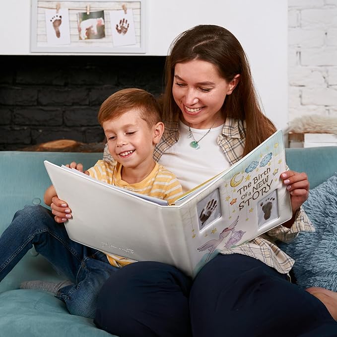 - Faux Leather Cover – Durable, attractive 12" X 12" leather-bound baby album and memory book for boys and girls; 60 pages to keep your precious memories, simple unisex memory book from baby shower up to age 5.