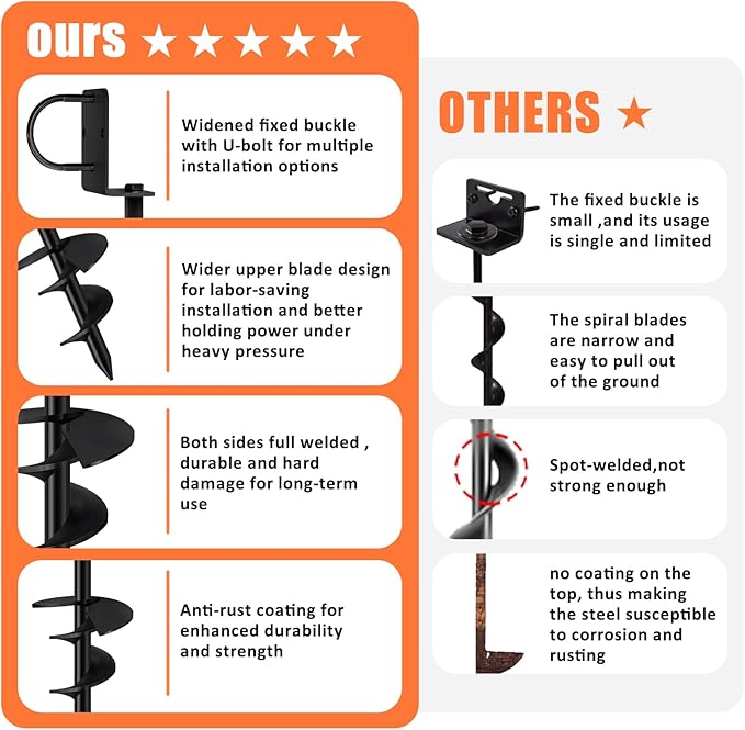 - Complete set for your convenience: These tent stakes include all the necessary components for a hassle-free installation, making it an ideal choice for both DIY enthusiasts and professionals.You will receive 4Γground anchors,4Γ brackets,4Γtop ringsοΌ4Γhex head screw bolts with washersοΌ8Γscrews with washersοΌa 14mm adapter and an open-end wrench.
