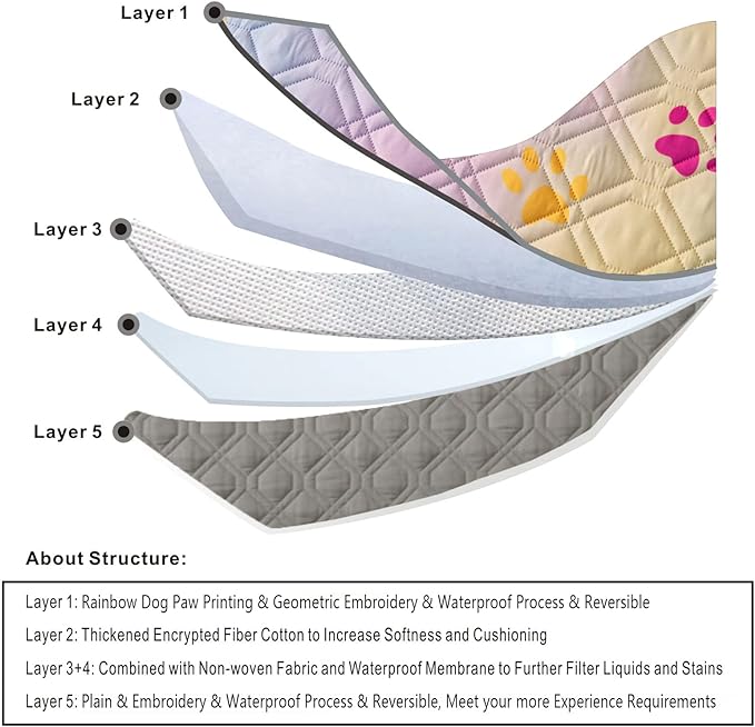 100% Waterproof Dog Bed Cover 68x82 inch Reversible Changing Pad Reusable Camping Mat for Kids/Pet/Dog/Cat Washable Geometric Embroidery Blanket Patchwork Rainbow Dog Paw Printed+Gray