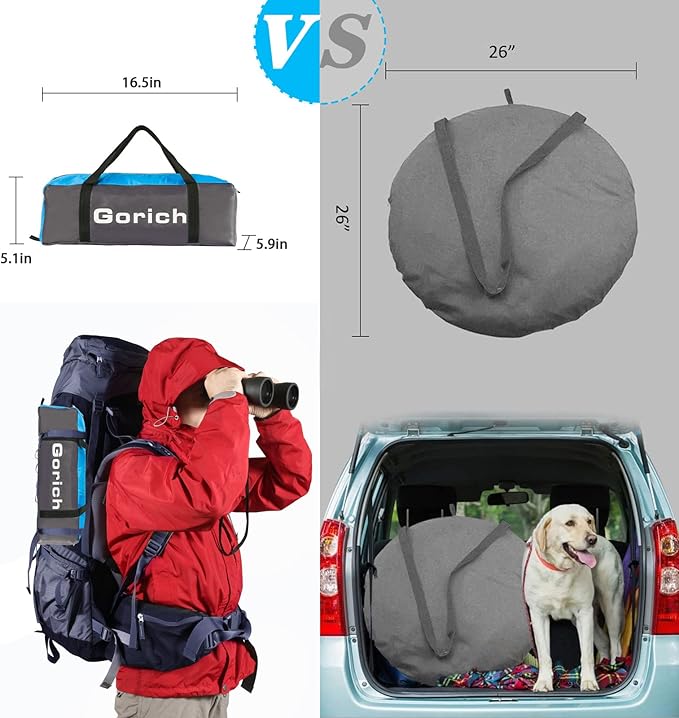 - Easy Set Up & Carry: Setting up fast within minutes. Gorich beach tent is much easier to fold than any kind of beach tents. It could fold down to a travel size of 16.5"L x 5.9"W x 5.1"H, weights 6.6 lbs. With a campact carrying bag, you can put it in your backpack, much easier to carry
