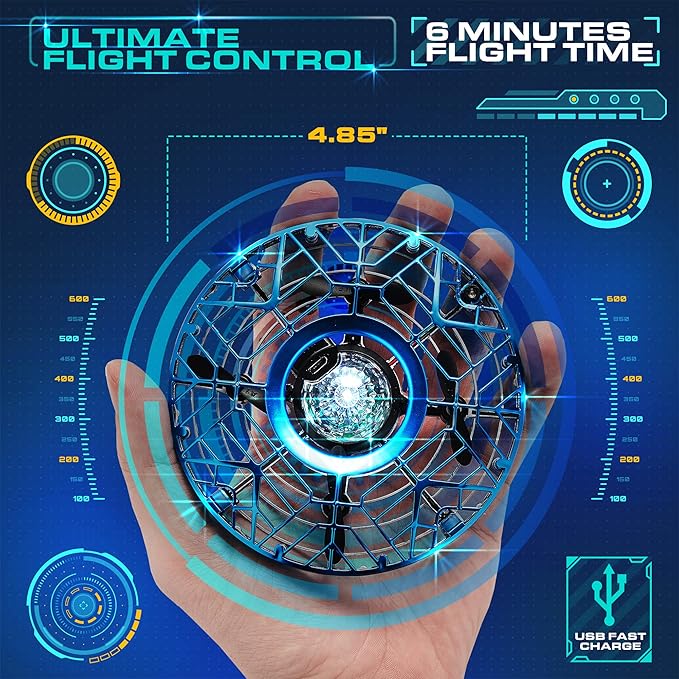 - 360Β° Rotating Flight Design: Fly this mini UFO drone toy with your hands! Place both hands on both sides of the drone, swipe a hand under when the lights start to blink rapidly, and watch this LED drone perform a 360Β° flip!