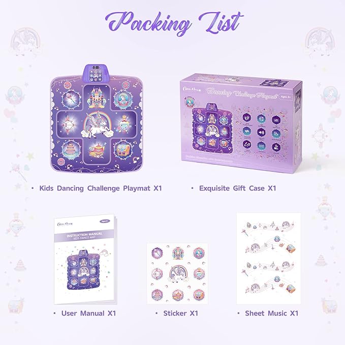 - ใ๐๐ฎ๐ซ๐๐๐ฅ๐ & ๐๐จ๐ง๐ -๐๐๐ฌ๐ญ๐ข๐ง๐ ใ Designed specifically for girls aged 4-8, our Unicorn Dance Mat is built to withstand hours of active use. Made from strong, tear-resistant materials with reinforced stitching, it ensures durability and stability, providing endless fun while maintaining its shape and functionality through every jump and step. Perfect for young dancers who love to move!