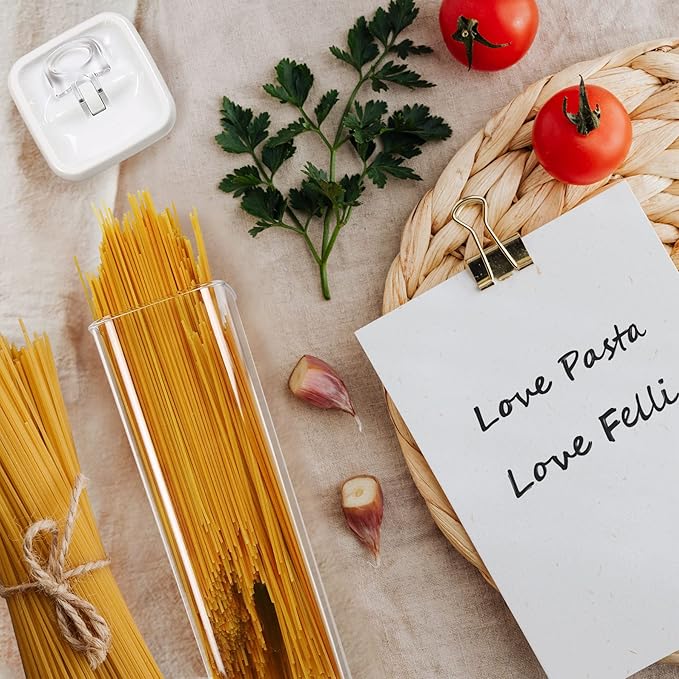 - 3 PIECES TALL SPAGHETTI CONTAINER β ITALIAN PASTA SET : Set includes 3pc 4 inch width REGULAR-Tall sized containers ( 2.0 quart), each size is perfectly calibrated to store common household staples including long noodles, spaghetti, fettuccine, linguine, lasagna, macaroni, farfalle, fusilli, also great for pantry, kitchen counter, makeup, bathroom, office supplies organization, or craft storage.