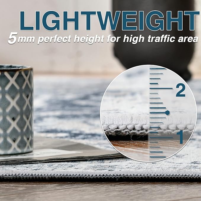 - Slim, Secure & Floor-Friendly: At just 1/8″ thick, this lightweight rug slips easily under doors and furniture while its built-in non-slip backing keeps it firmly in place. Perfect for high-traffic areas, it offers style and stability without bulk.