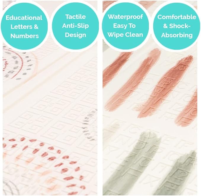 - Easy Cleanup- The soft foam mat is waterproof for easy clean up and prevents absorption and stains. Designed by parents for parents, you’ll love its convenience as much as your baby loves playing on it