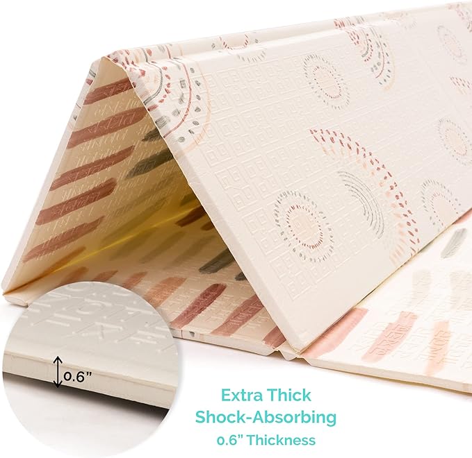 - Space To Play - This extra large baby play mat clocks in at 77 inches by 70 inches with a thick 0.6 in. padding, giving your little one plenty of space to crawl, play, or take a nap after they’re tuckered out