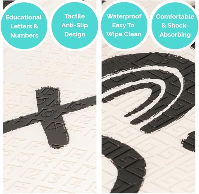 • Easy Cleanup- The soft foam mat is waterproof for easy clean up and prevents absorption and stains. Designed by parents for parents, you’ll love its convenience as much as your baby loves playing on it