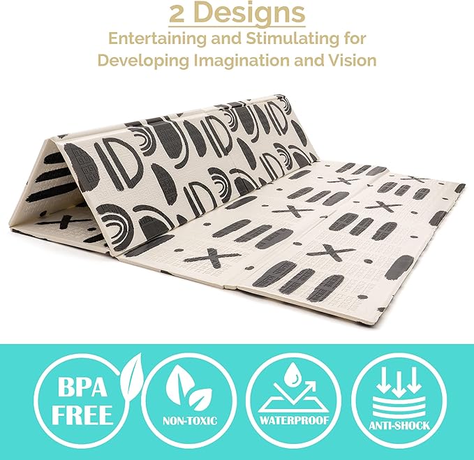 • Take It Anywhere - The accordion folding design makes for easy storage, so you can pack it up in the car and take this tummy time mat to the beach, park or anywhere that you like to relax with your baby