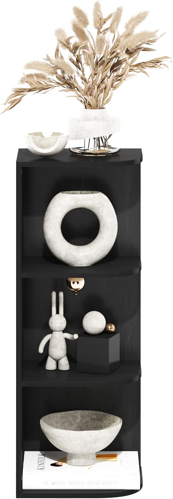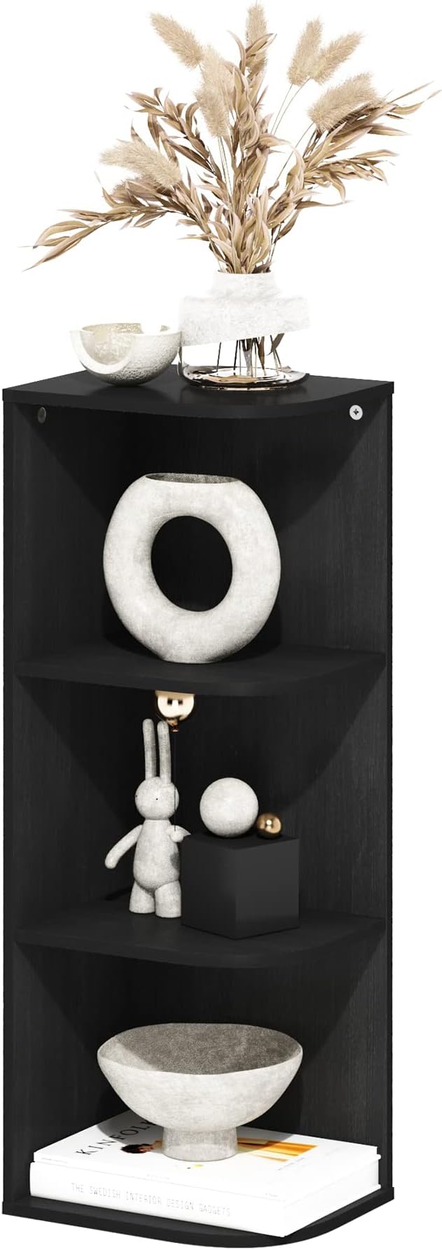 Furinno Pasir 3-Tier Corner Open Shelf Bookcase, Blackwood