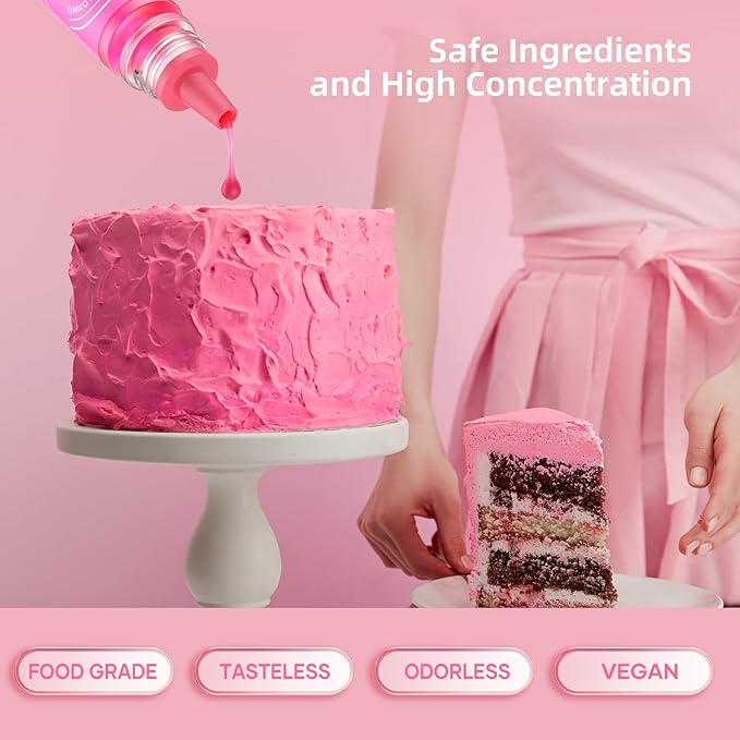 - Strong Tinting Strength - With upgraded highly concentrated formula water based texture,a little of these colors go a long way.The finished food is bright and rich in color, uniform and delicate.Whatβs more, the liquid food color will not evaporate with moisture when heated or frozen. This food coloring also can be mixed together to create new shades