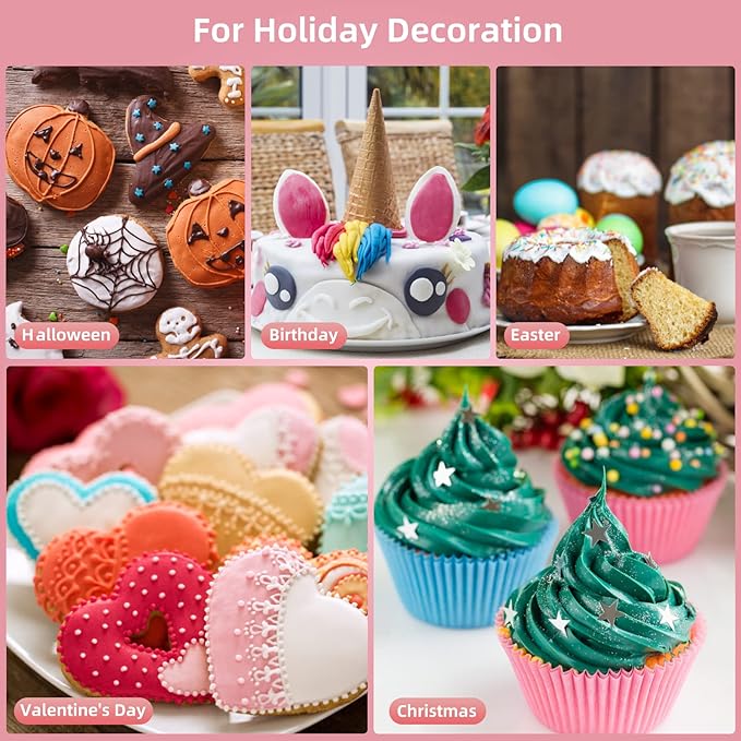 - Multiple Uses - Our assorted liquid food dye not only perfect for using on cake,icing,frosting,fondant,batter,cookie,cupcakes,also can be used for holiday decorated, Easter Eggs,Valentine's Day,Easter Day,Christmas,Halloween.Making colorful desserts will bring more surprises to the festival
