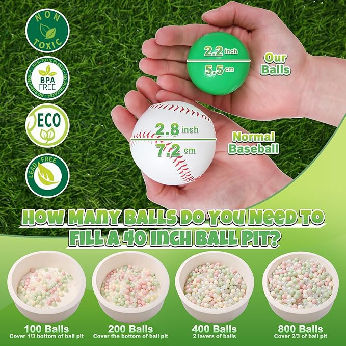 - PACKING - 100 pcs pack for home use. Great for filling any play tent, playpen, kiddie pool, baby playhouse, play yard, ball pit, and bounce house. Great photo prop for dogs, cats, pets as well. Can use it at parties, backyard, parks, playgrounds, day care, school, carnivals.