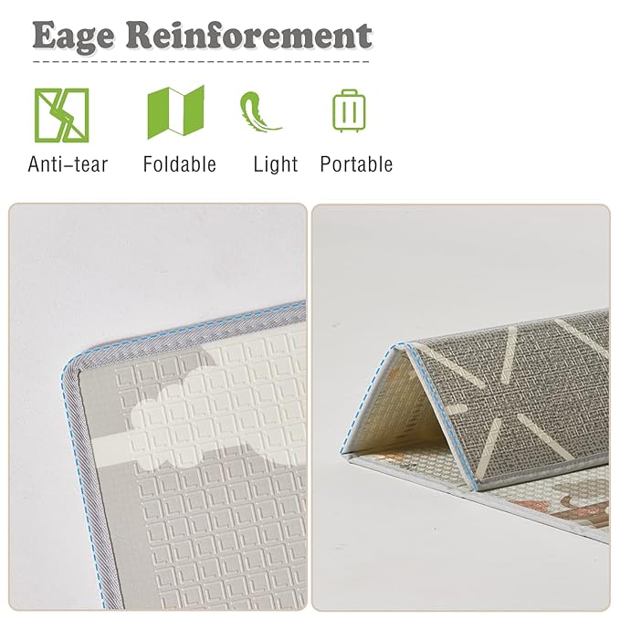 - Portable & Foldable: This baby play mat can taking on a trip for a nice soft area for kids to play; can be placed outdoor, back of van and place at multiple surfaces. This baby play mat is easy quick to fold up