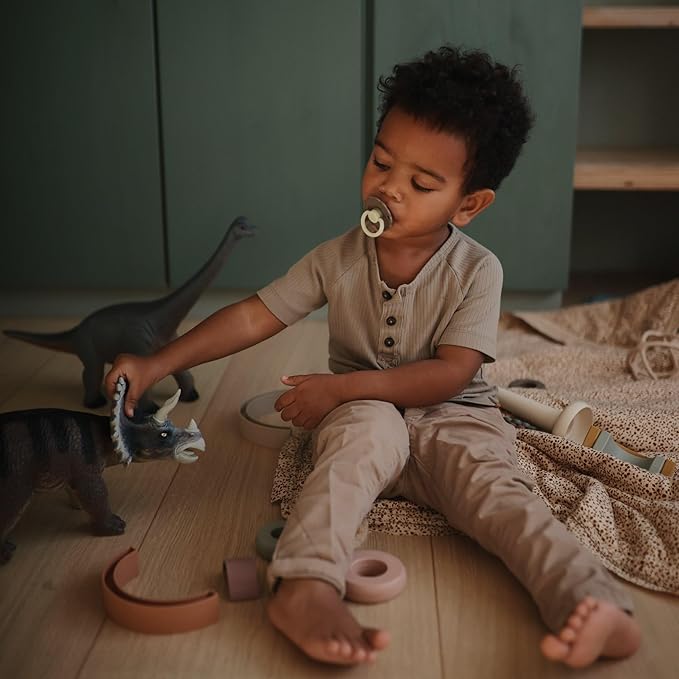 FRIGG Daisy Night SilkySoft Silicone Baby Pacifier | Made in Denmark | BPA-Free (Portobello/Croissant, 6-18 Months)
