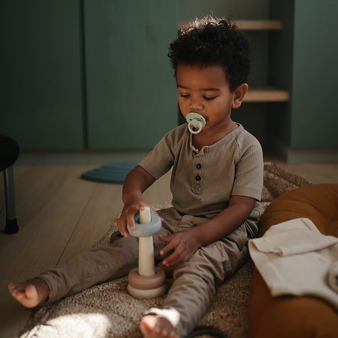 FRIGG Daisy SilkySoft Silicone Baby Pacifier | Made in Denmark | BPA-Free (Blush/Sage, 6-18 Months)