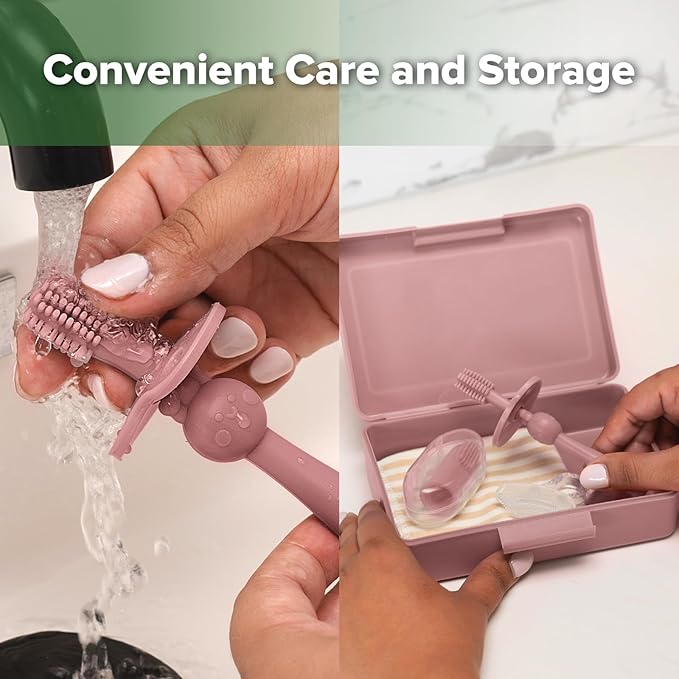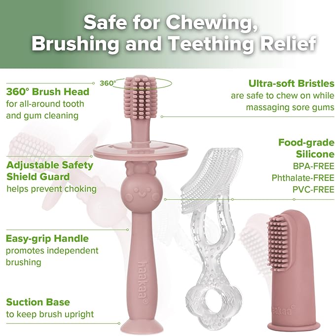 haakaa Training Toothbrush Set Oral Care Kit, Soft Silicone Toothbrush for Baby, Infants, Toddlers & Kids, Blush