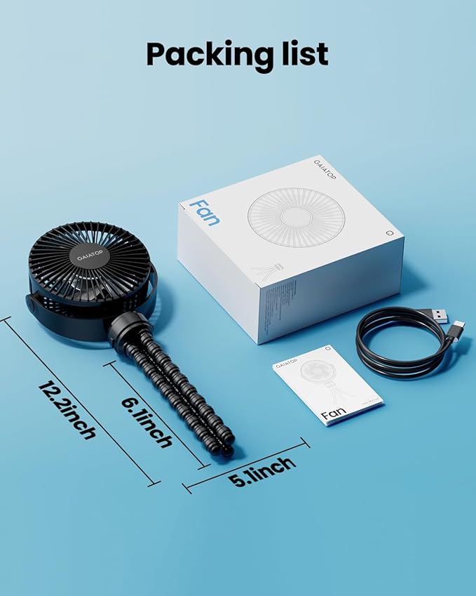 - Mini Size with Rotation Design: The mini fan is only 5.61*2.51*6.49inches, 0.52lb; 360° of horizontal rotation and 210° of vertical rotation, You can always find your favorite angle to enjoy the comfort of the wind