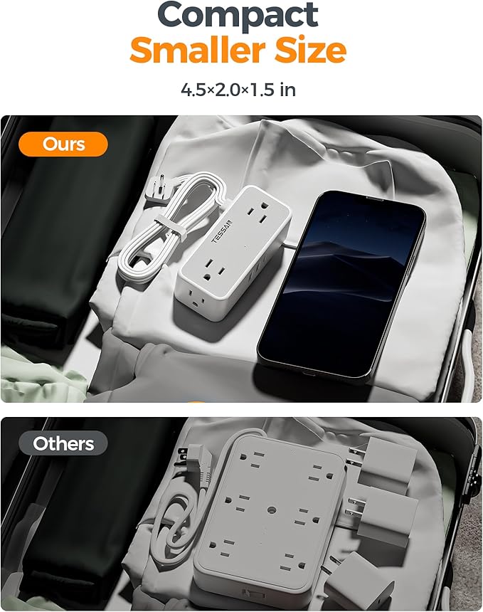 - 900J Surge Protector Outlet: Power strips with surge protection are equipped with short-circuit protection and over-current protection. This flat outlet extension cord can protect your electrical appliances
