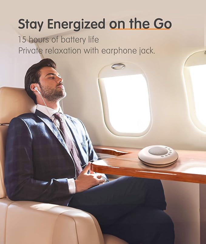 - 【Rechargeable Battery and Portable】The portable noise machine has a Large-capacity Backup Battery that lasts for over 15 hours and compact size of 6*6*1.5in,enjoy relaxation anytime and anywhere.Whether it's on the bedside table to accompany your nightly sleep,or in the office to help you nap and recharge,or even on your travels to create favorable conditions for your rest.