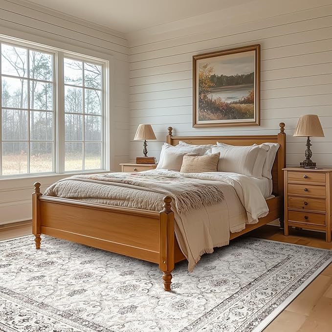 jinchan Floral 6x9 Area Rugs for Living Room - Machine Washable Vintage Distressed Boho Design Throw Rug Stain Resistant Carpet Low-Pile Thin Non-Slip for Bedroom Dining Room Nursery (6‘x9',Beige)