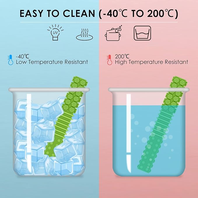 - EASY TO CLEAN: very easy to clean, just wash the sensory chewing toys with soapy water, or wash it with dishwasher. Our teethers for babies can be sterilized by boiling water, steam sterilizer and sunlight. -40β to 200β Temperature resistant, we suggest cleaning it before first use and after each use