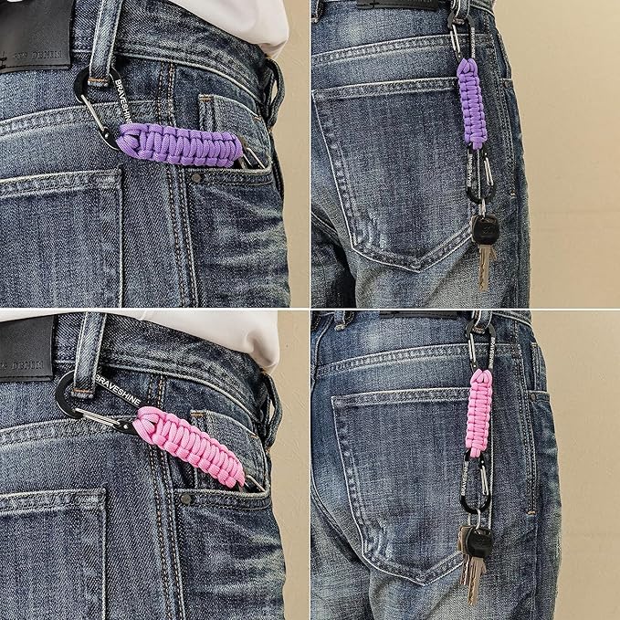 - Compact Collection: Survival keychain ring hook is convenient and compact for you to hook it to the bags, belts or put it into your pocket, car, survival tool box. You can easily take the premier parachute cord carabiner keychain to anywhere at anytime.