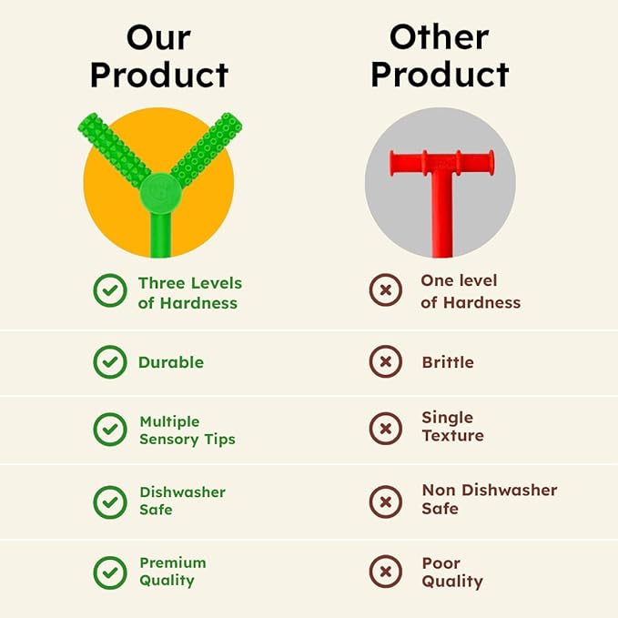 - Three Levels of Hardness for Improving Facial Muscle β Our oral motor chewies for sensory kids not only offer varying levels of hardness through numbered indicators (1, 2, and 3 -being the highest) on each chewy but also enhance facial muscle strength. This unique feature allows individuals to select their perfect sensory necklace for personalized satisfaction while improving their facial muscles and providing a safe & discrete alternative to self-chewing behaviors like biting hands or t-shirts.