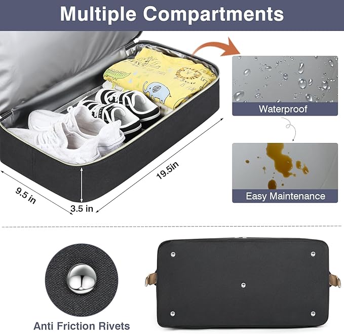 • [Dry Wet Seperated Compartment] The compartment of this travel diaper bag is fashioned with PVC waterproof materials.This compartment can also be used to hold dirty clothes, shoes or wet towels, separating wet and dry to prevent your clean luggage from getting soiled or wet. Compartment size: 19.5*9.5*3.5in. Also studded 4 round metal feet in the bottom to keep the baby diaper bag clean and off the ground.
