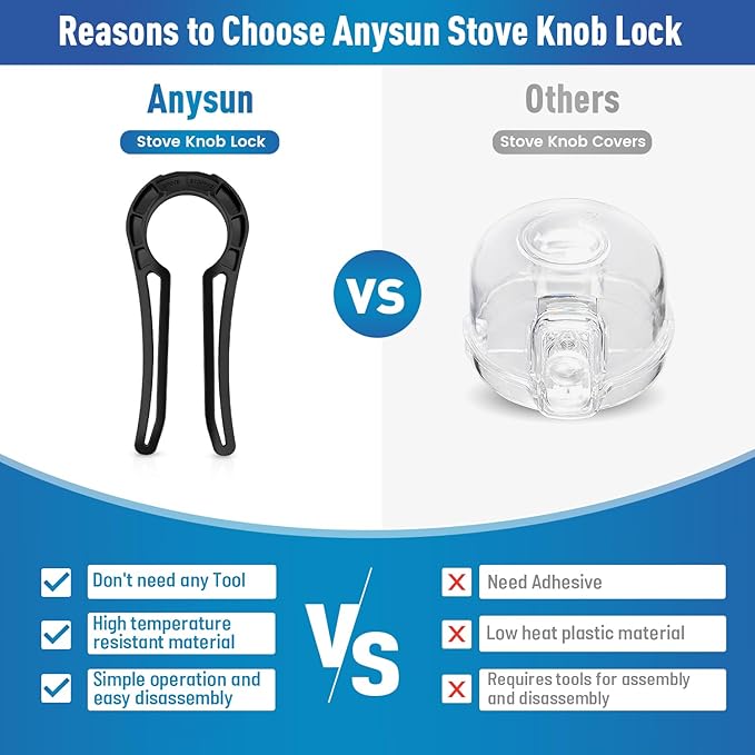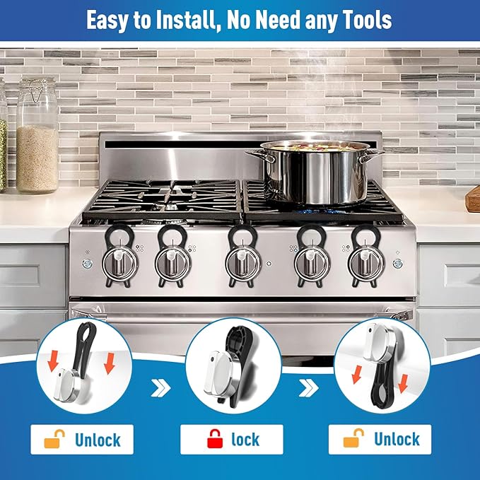 - Keep your kids safe: Use the Anysun stove knob cover lock. In this way, the baby does not open the gas stove switch to avoid accidents. Our functional design stove knobs effectively prevent babies from opening gas stoves to protect children from burns, scalds, gas leaks, and other accidents.