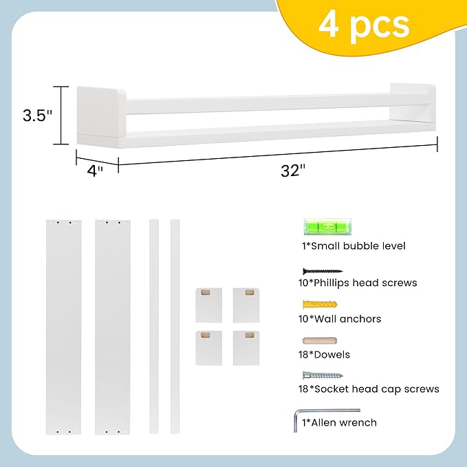 - Durable & High-Quality: Made of solid pine wood, these floating shelves are built to last. They'll provide a stylish and practical storage solution for years to come, making them an excellent addition to nursery decor and any room throughout your home