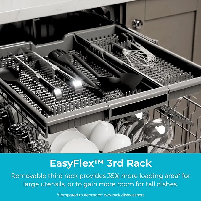 Kenmore 18" Built-in Stainless Steel Tub Dishwasher EasyFlex 3rd, SmartWash, UltraWash Plus, TurboDry, MoreSpace Adjustable Rack, Energy Star Certified, White