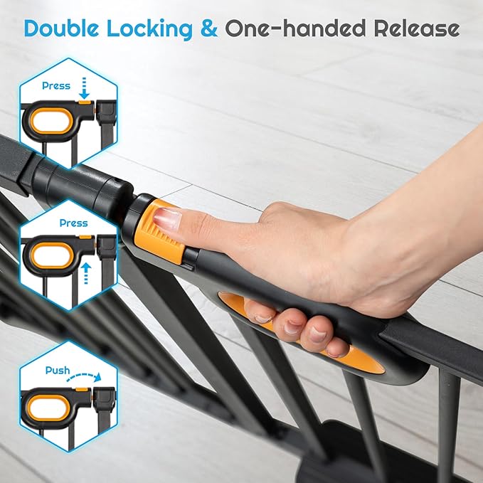 - 【Easy Installation】The safety gates for stairway is easy to install without drilling and can be installed in minutes, making it an ideal choice for parents and pet owners.